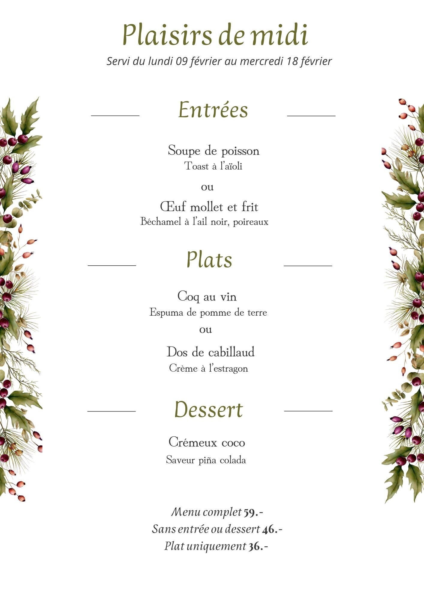 Menu disponible les soirs et le samedi midi À partir du jeudi 12 MARS